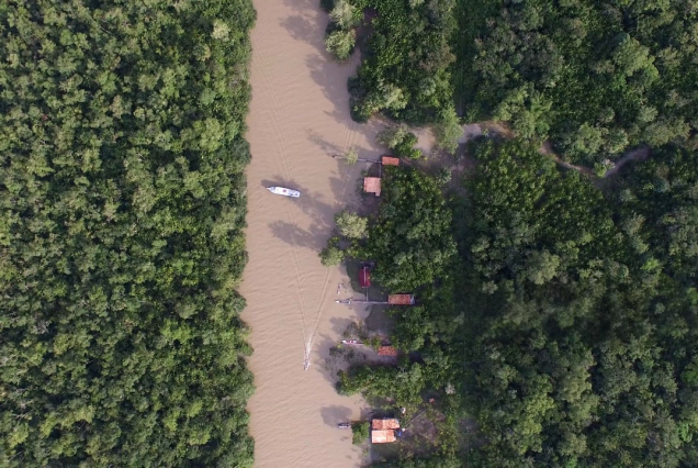 • Navegación hacia el Lago do Catalão, hogar de un pueblo flotante.