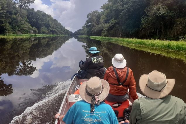 • Navegación en canoa hacia una plataforma de investigación para observar delfines rosados en su hábitat natural.