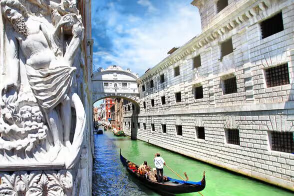 Entre los monumentos más destacados, pasarás bajo el icónico Puente de los Suspiros 🌉, un lugar que guarda una historia llena de misterio y romance. Se cuenta que quienes cruzan el puente, susurran sus deseos o pensamientos más profundos, creando una atmósfera única para los viajeros. 💭