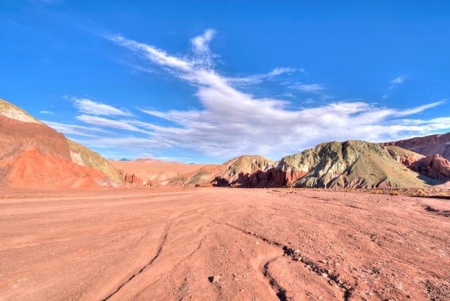 Este mágico lugar se encuentra en la conjunción de la Cordillera de Domeyko, la Cordillera de la Sal y los Andes. Su nombre proviene de la impresionante variedad de colores y tonalidades creadas por la arcilla y los minerales que tiñen los cerros y formaciones rocosas de este singular paisaje.